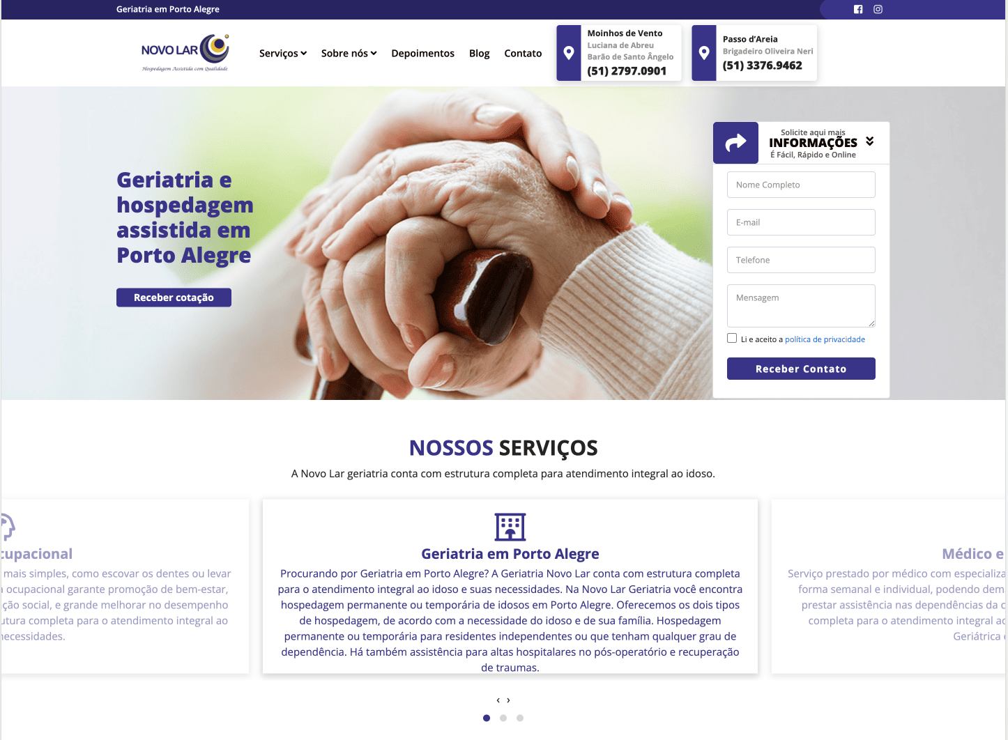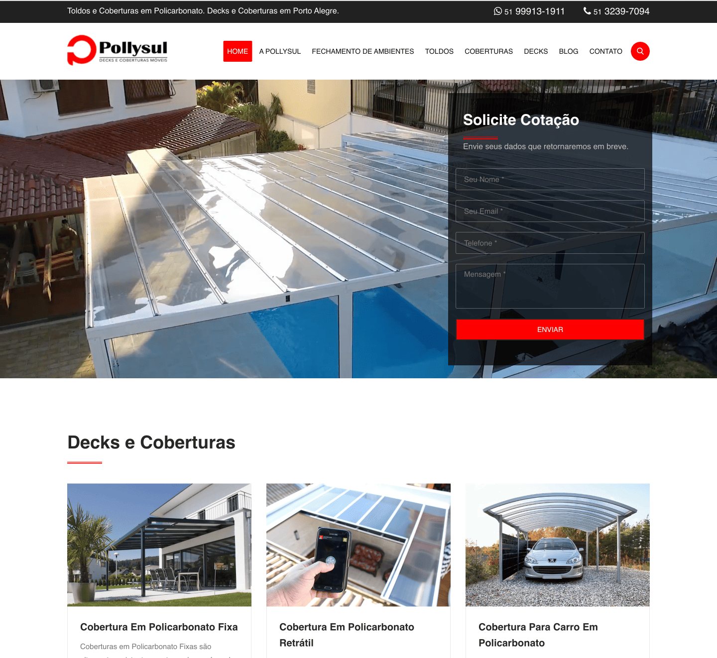 Desenvolvimento de site otimizado para indexação no Google, ampliando a visibilidade e a geração de leads qualificados no segmento de toldos, coberturas e decks em Porto Alegre.